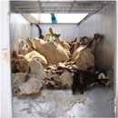 توضح الصور الجانبية عملية التخلص من الحيوانات النافقة ابتداءً من عملية جمعها وحتى حرقها.